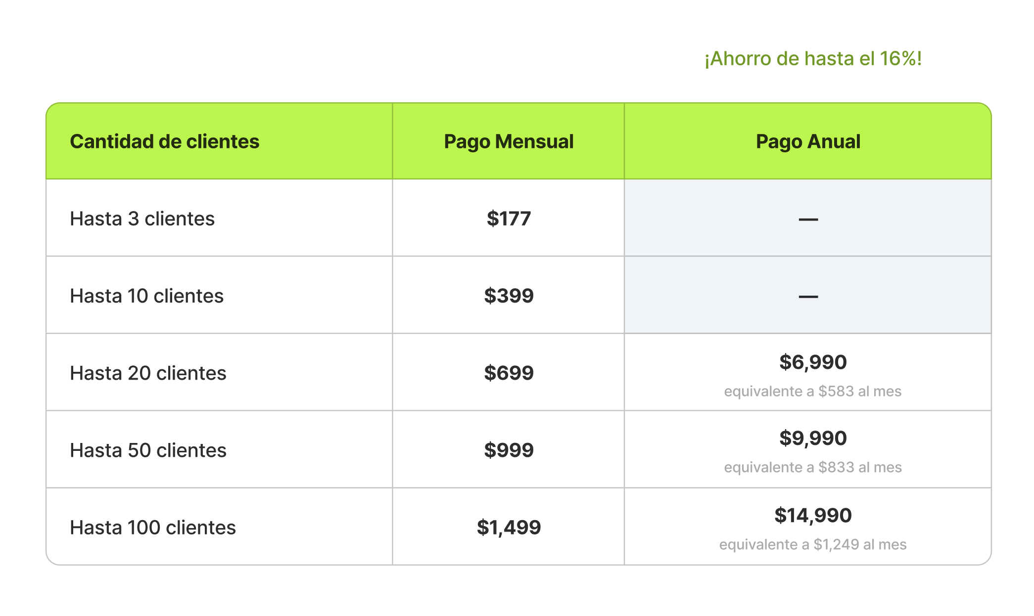 📊 Los nuevos planes anuales están disponibles para los planes de hasta 20, 50 y 100 clientes.